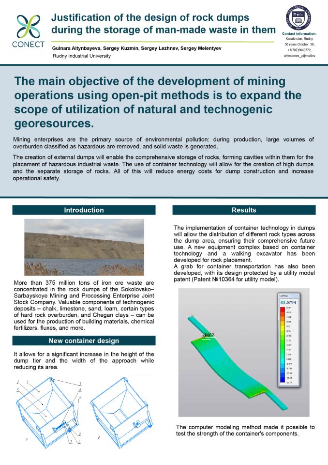 Justification of the design of rock dumps during the storage of man-made waste in them